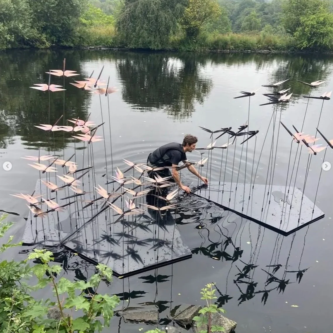 A series of 180 unique dragonfly sculptures installed across three UK sites, commissioned by the Wildfowl and Wetlands Trust to celebrate the remarkable life of the dragonfly. Each sculpture was individually designed and floated within wetland habitats across the wildlife reserves, responding to local conditions and ecologies. The works were developed and installed in close collaboration with wetland specialists, carefully designed to minimise disruption to wildlife while enhancing visitors’ engagement with these sensitive environments.